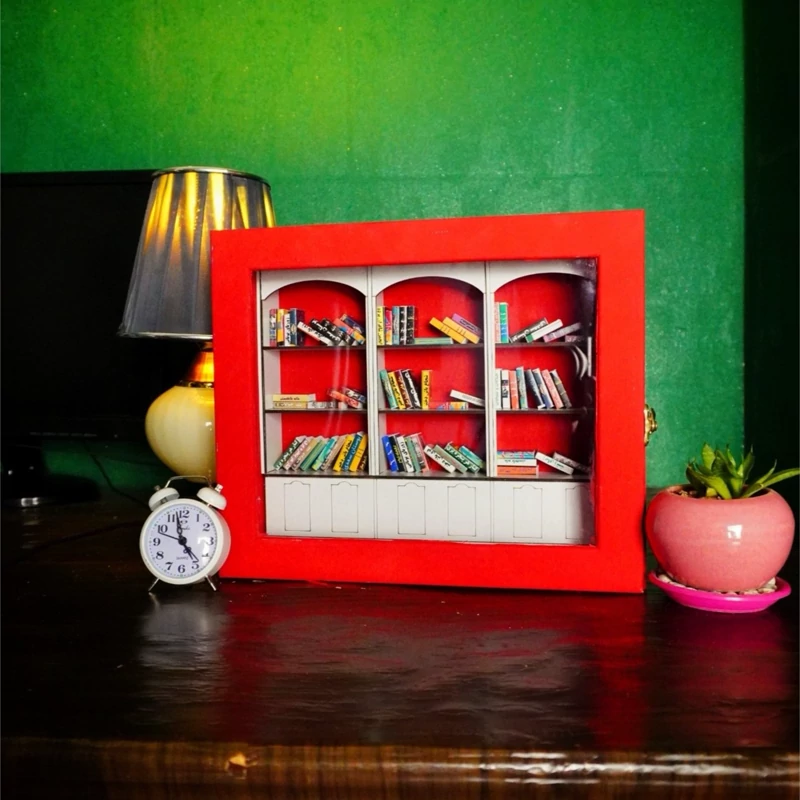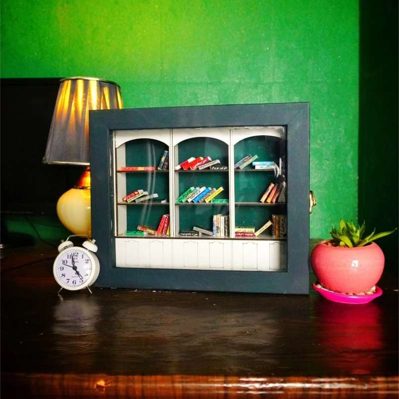 این کتابخانه مینیاتوری، علاوه بر جنبه کاربردی، یک قطعه دکوراتیو جذاب نیز به فضای شما اضافه میکند و حس هنر و کلاس را در محیط القا میکند