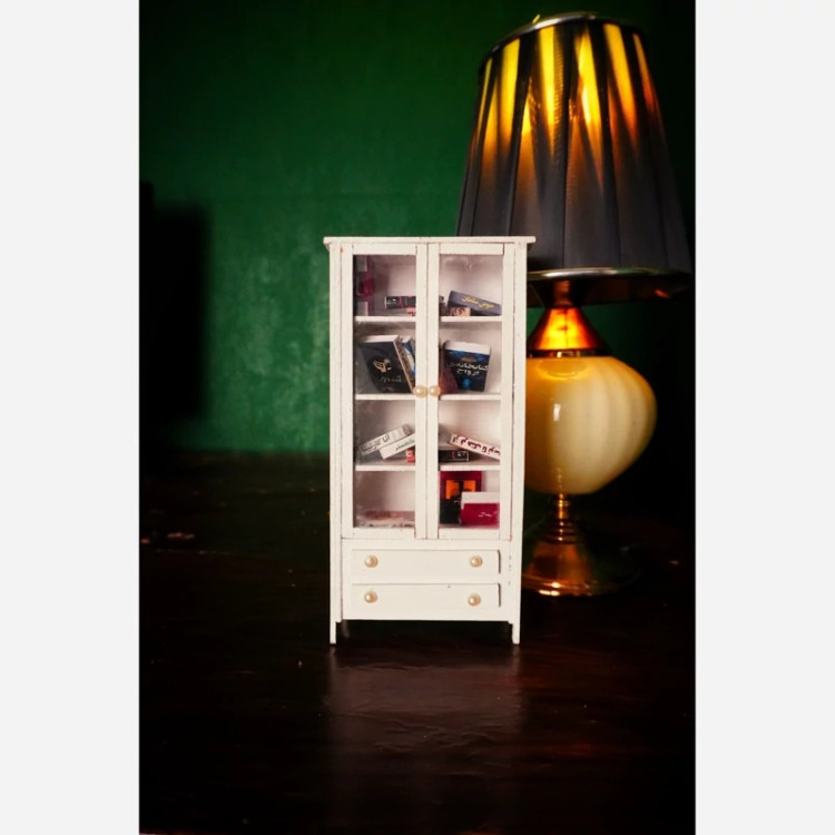 این کتابخانه با ارتفاع 21 سانتیمتر، عرض 8 سانتیمتر و عمق 5 سانتیمتر ساخته شده و درون آن 15 عدد کتاب مینیاتوری ایرانی با جلدهای متنوع و طراحی دقیق قرار دارد. هر کتاب با دقت دستساز آماده شده تا حس واقعی یک کتابخانه کوچک را منتقل کند.
