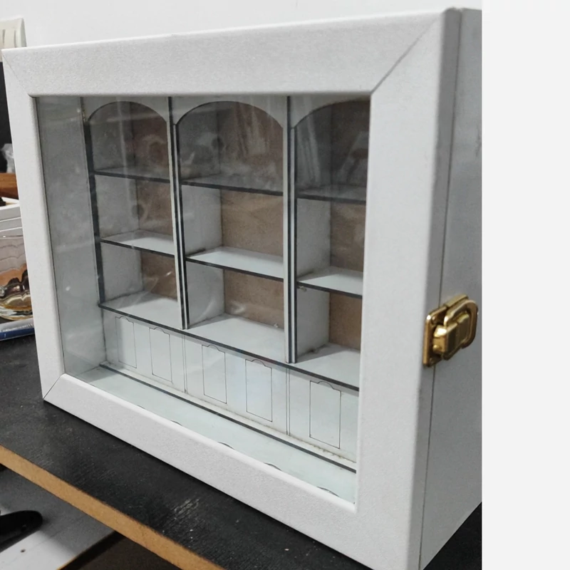 کتابخانه مینیاتوری سفید رنگ، ساختهشده با ظرافت و آرامشبخش.